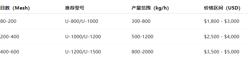 The price is mainly determined by the mesh size, equipment diameter and output: