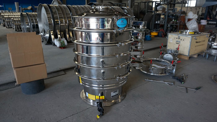 The multi-layer rotary vibrating screen has a compact structure and mainly includes a screen box, a screen layer, a vibration motor, a shock-absorbing spring, a base, a sealing cover and a discharge port. The screens are stacked in multiple layers and fixed firmly. The screen frame is easy to disassemble with buckles. The vibration motor is installed on the side or bottom of the screen box to drive the screen box to vibrate. The sealing cover is dustproof, and the discharge port is separated by layers. The whole machine is welded or bolted, and the high-end model is equipped with an automatic screen cleaning device to improve efficiency.
