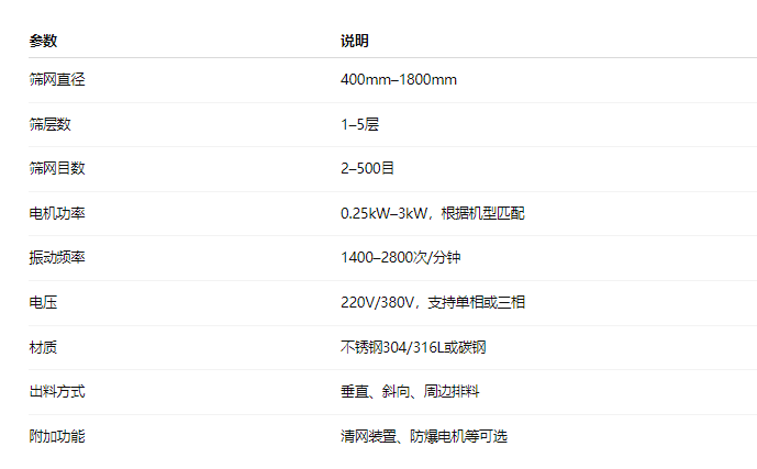 Multi-layer vibrating screen for grading and screening is an efficient equipment for fine grading and screening of materials. The principle is that the motor drives the eccentric block to vibrate, so that the material jumps and layers on the screen surface to achieve rapid screening. The equipment can be configured with 1-5 layers of screens according to demand, and screens with different mesh sizes (commonly ranging from 2 mesh to 500 mesh) can achieve multi-level screening of coarse and fine particles. The main parameters include screen diameter, amplitude, vibration frequency, motor power, etc. Depending on the specifications, materials (such as stainless steel or carbon steel) and functional configuration, the market price is generally between $700 and $4,200. The multi-layer design not only improves the screening accuracy, but also greatly improves the processing capacity, meeting the efficient screening needs of different industrial fields.